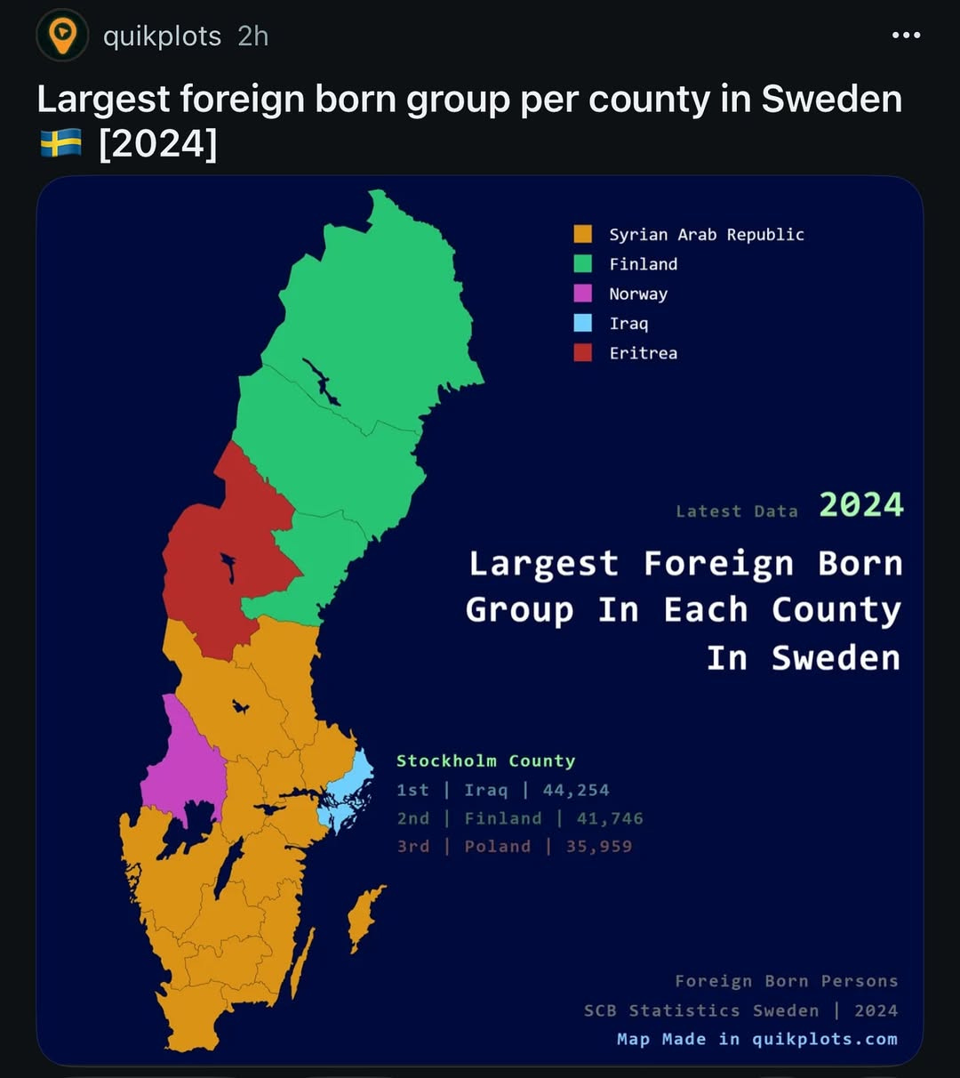 🇸🇪 Largest Foreign Born Group in each County in Sweden