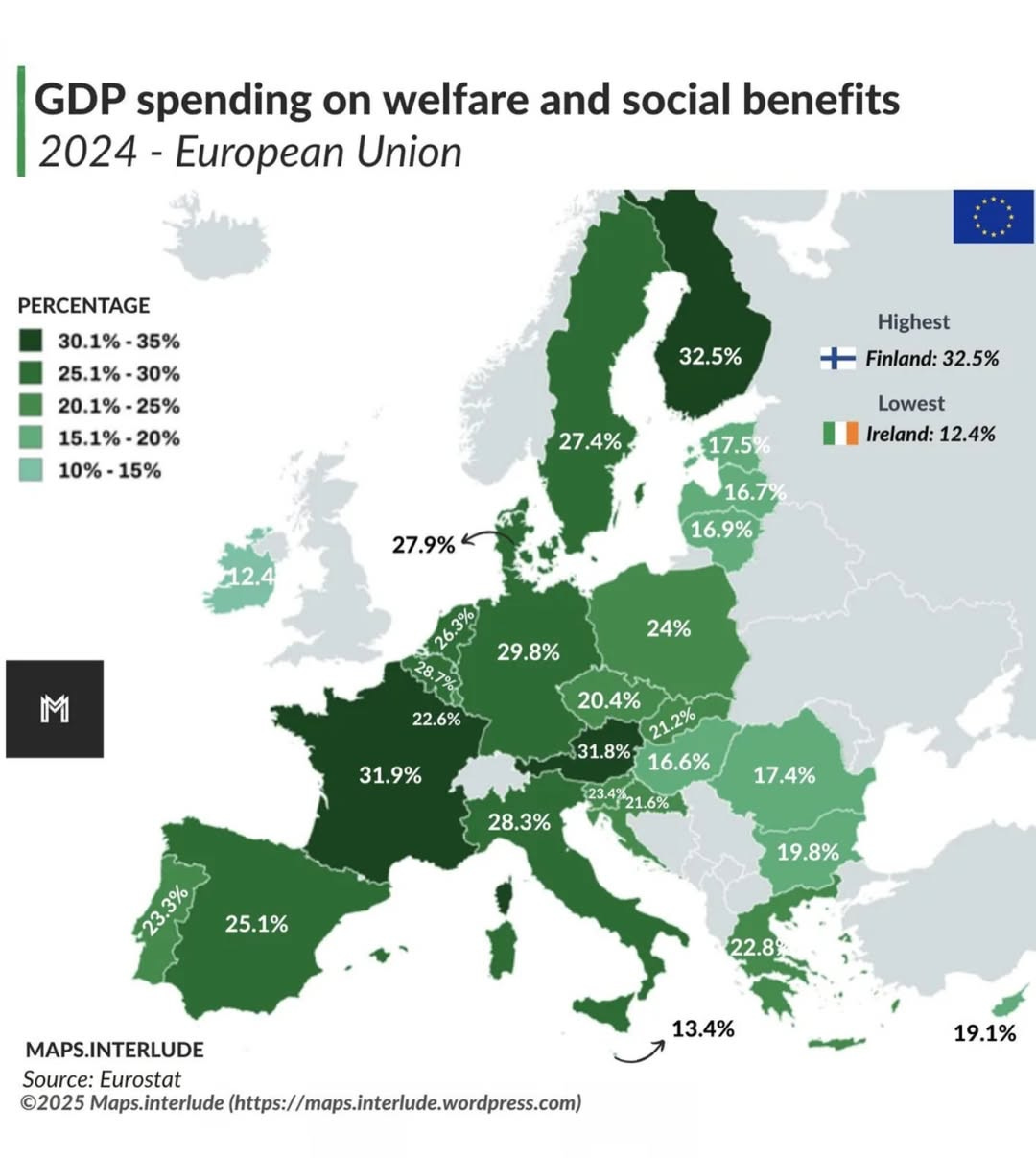 MAPPED: European Countries & Their Social Safety Net Spending (as a % of GDP)