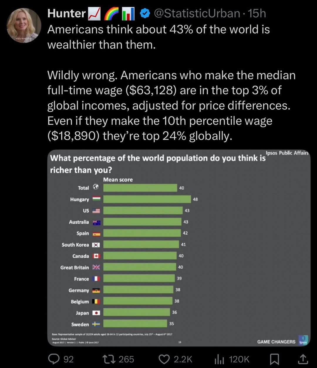 📊 POLL: Americans Think 43% of the World Has More Money Than Them