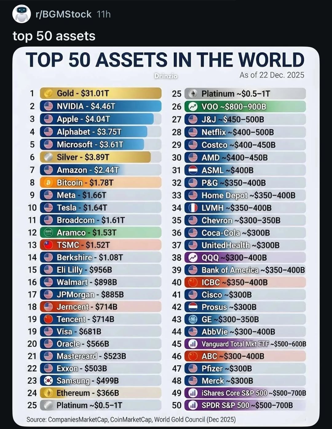 🏆 Top 50 Most Valuable Assets in the World (by Market Cap)