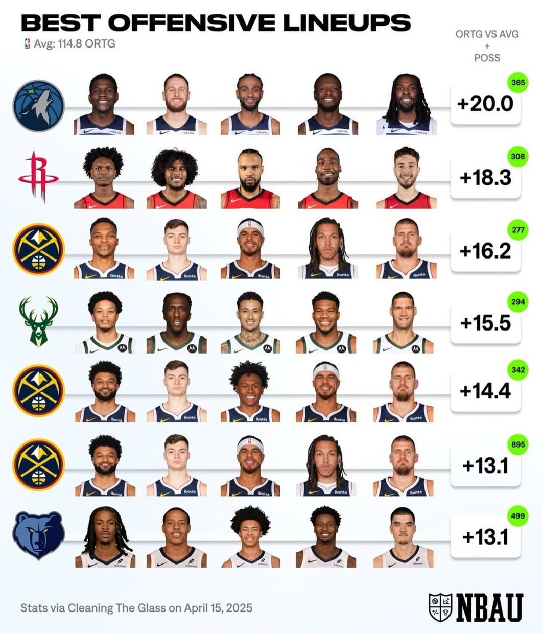 ⛹️♂️ The NBA’s Best Offensive Lineups (2024-2025 Season)