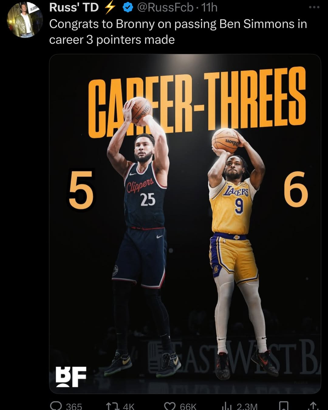 Bronny James Surpasses Ben Simmons in Career 3-Pointers