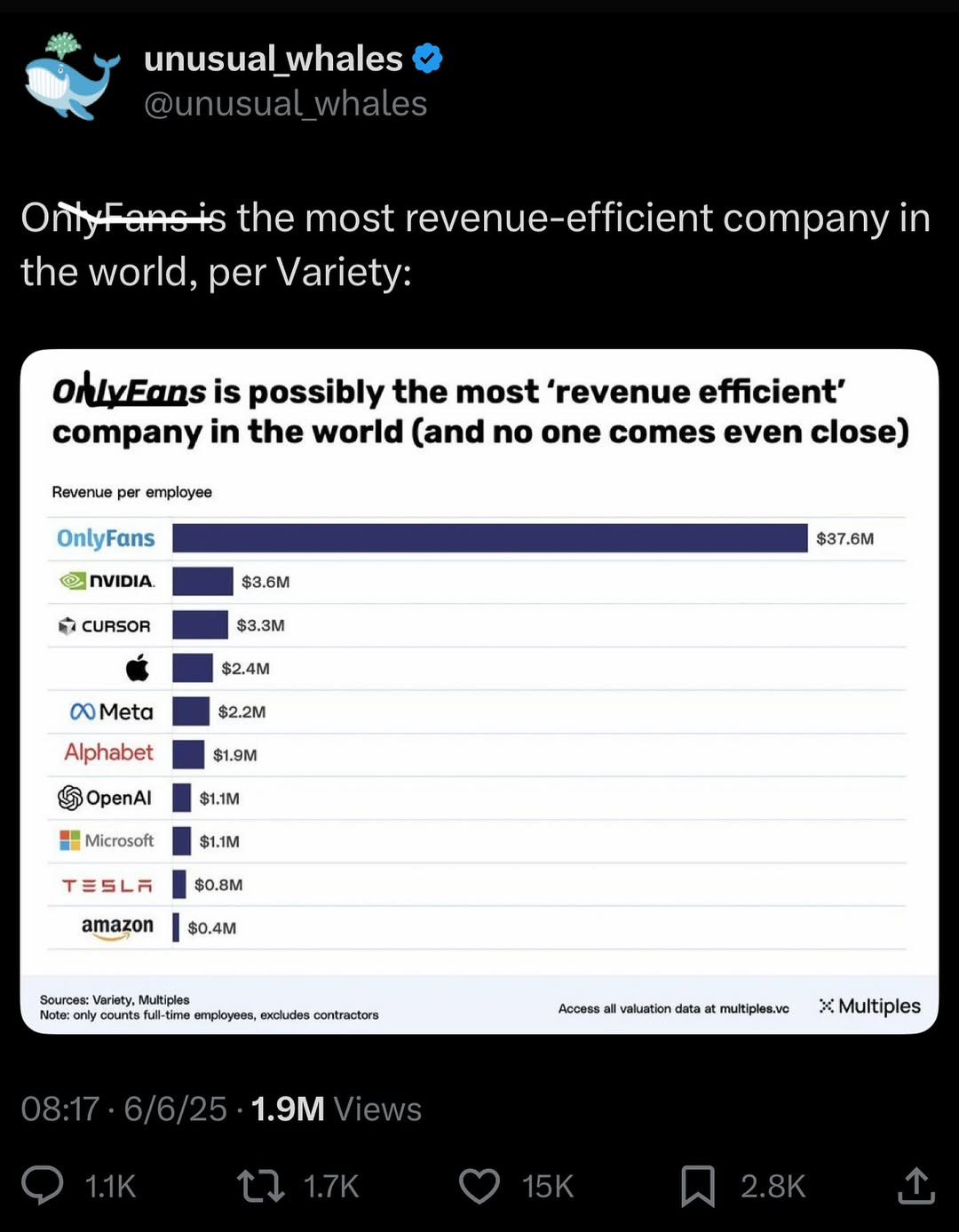 📊 OnlyFans is #1 in Revenue Per Employee