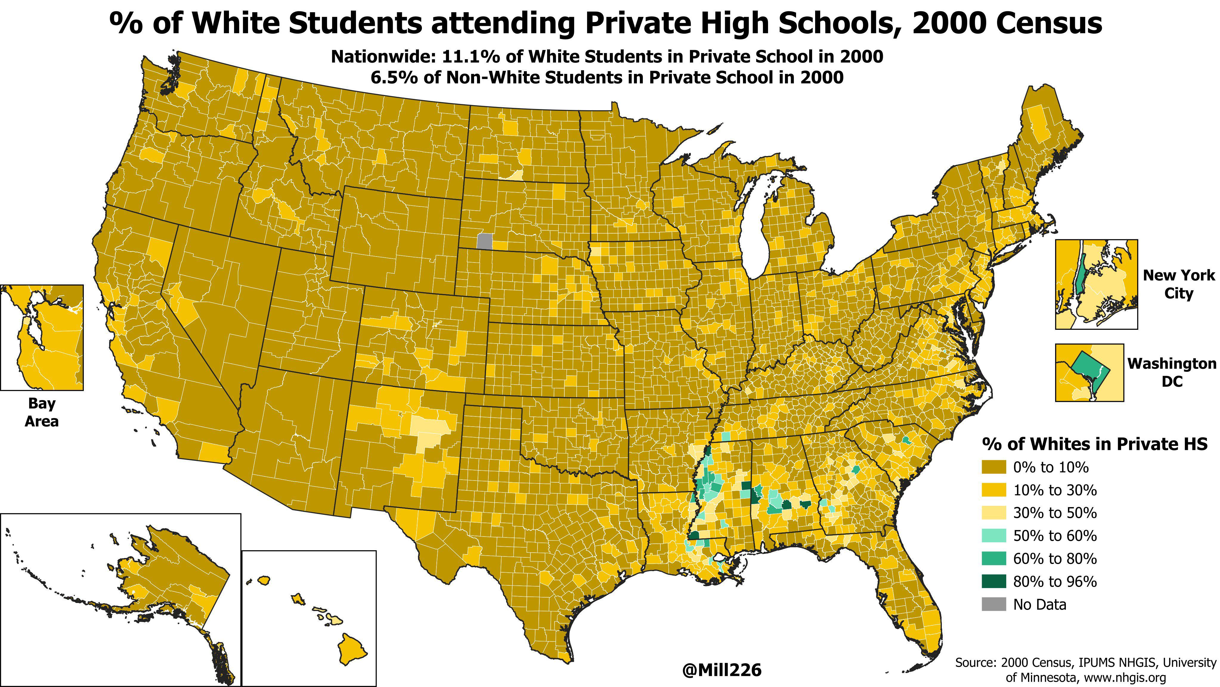 Percentage of White Students Attending Private High Schools, 2000 Census
