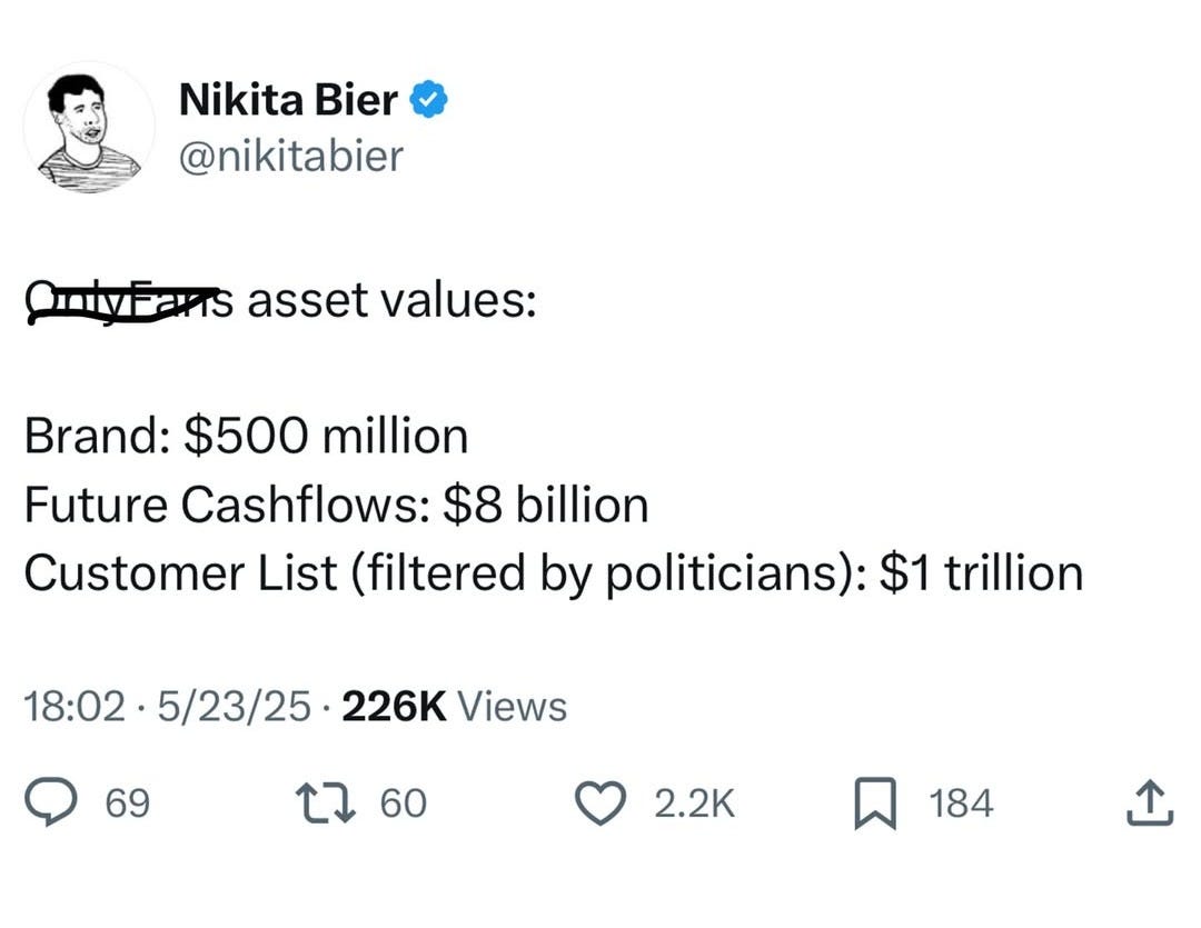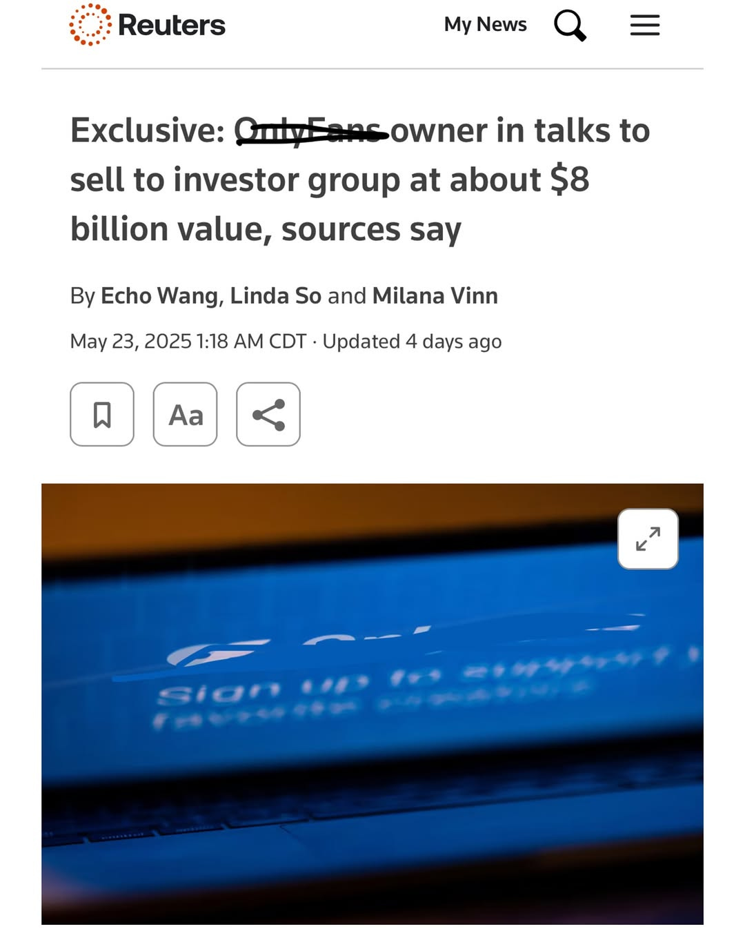PLUS, OnlyFans is trying to sell their business for $8 billion.