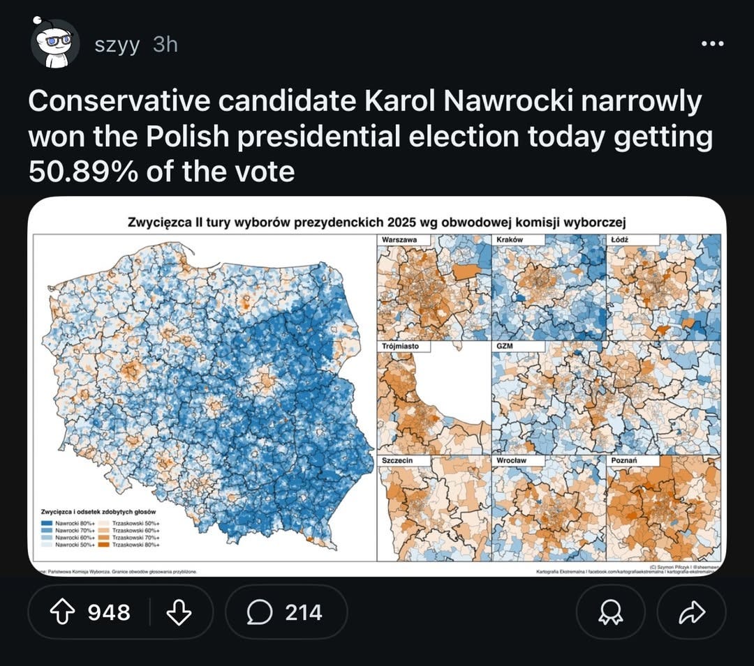 🇵🇱 Poland’s Electoral Map: Nawrocki vs. Trzaskowski