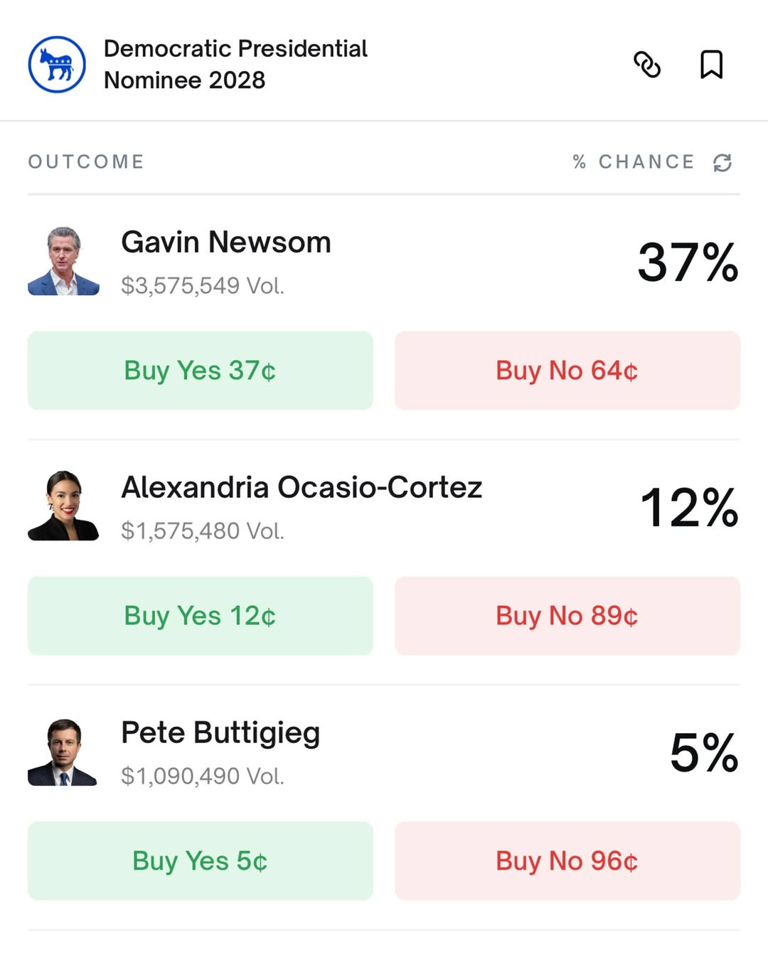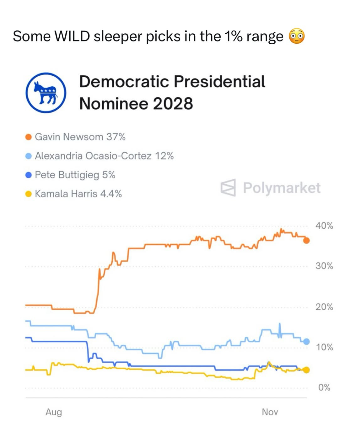 πΊπΈ Newsom is Polymarketβs Favorite for Democratic Nominee in 2028