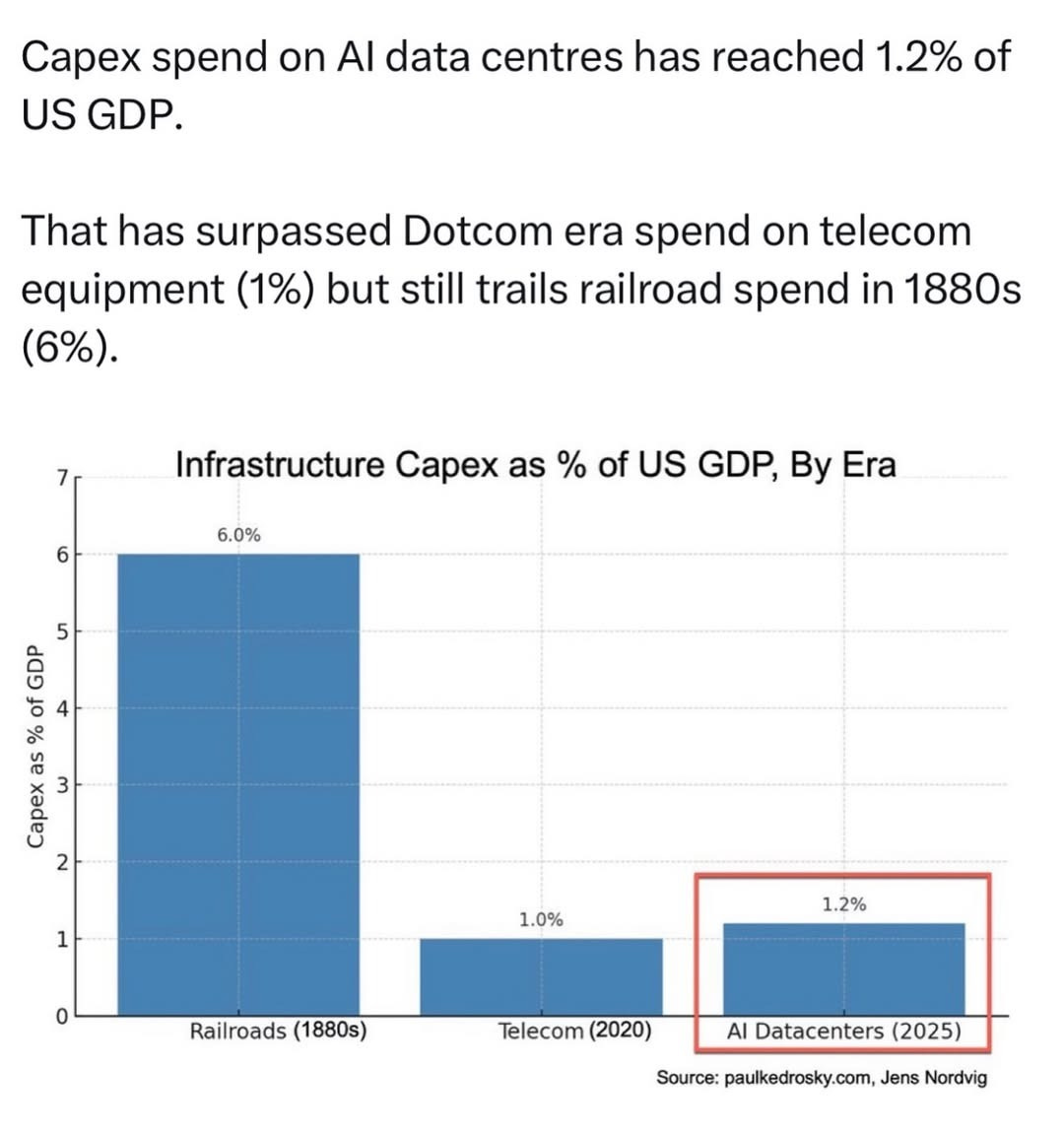 π AI Companies Spending on Data Centers Now Equals 1.2% of US GDP