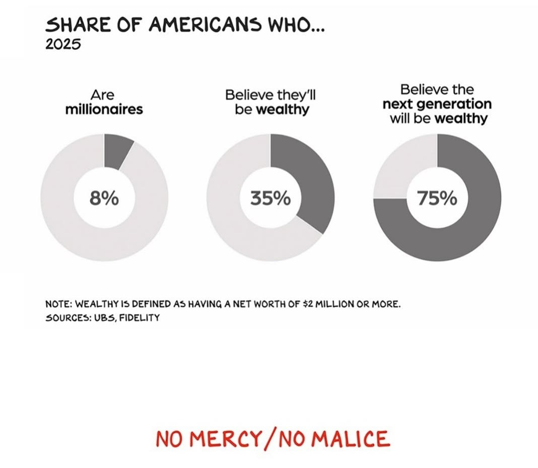 PLUS, 3 in 4 Americans believe their family will be wealthy some day.