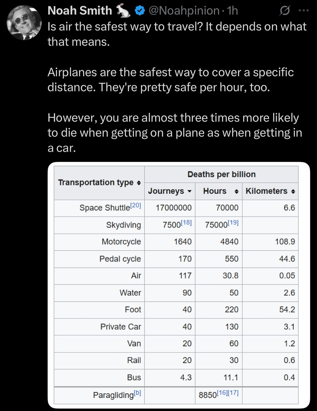 βοΈ Your Odds of Dying in Each Form of Transportation