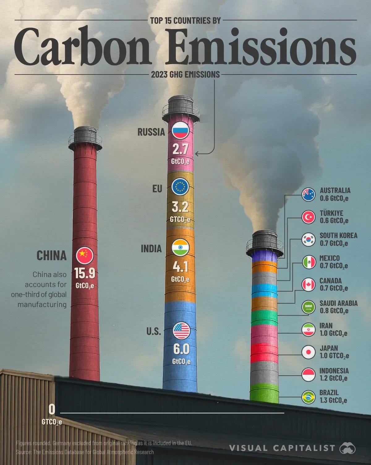 π¨ Top 15 Countries by Carbon Emissions, 2023