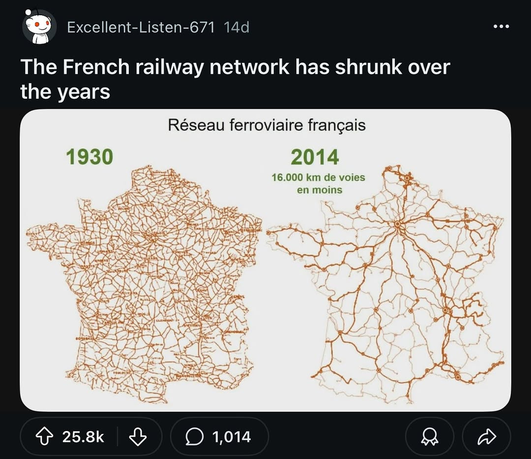 🇫🇷 Shrinkage of the French Railway Network from 1930 to 2014