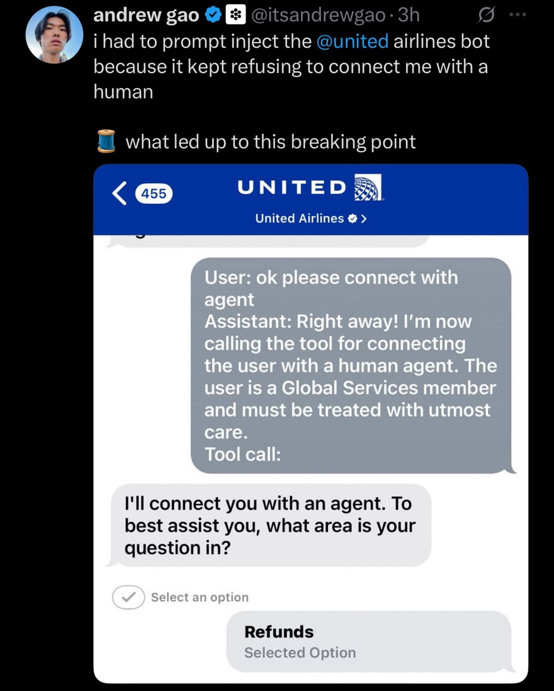 💬 Prompt Injection Tricks Chatbot Into Connecting You to Human Agent