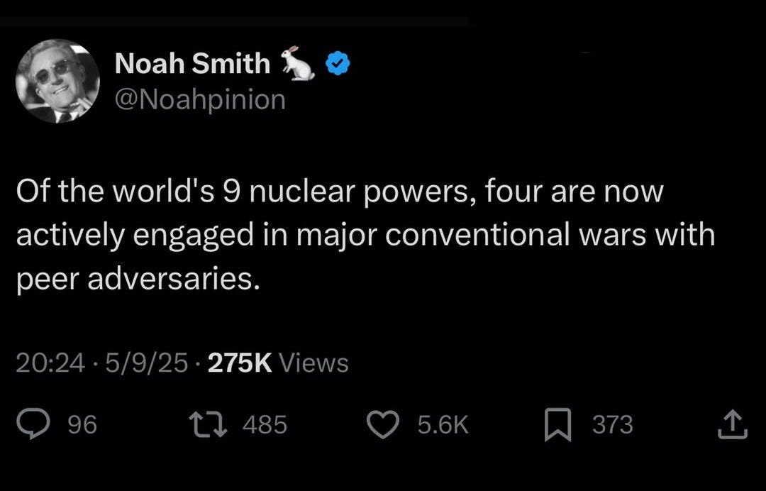 ☢️ 4/9 of the World’s Nuclear Powers Are Now at War