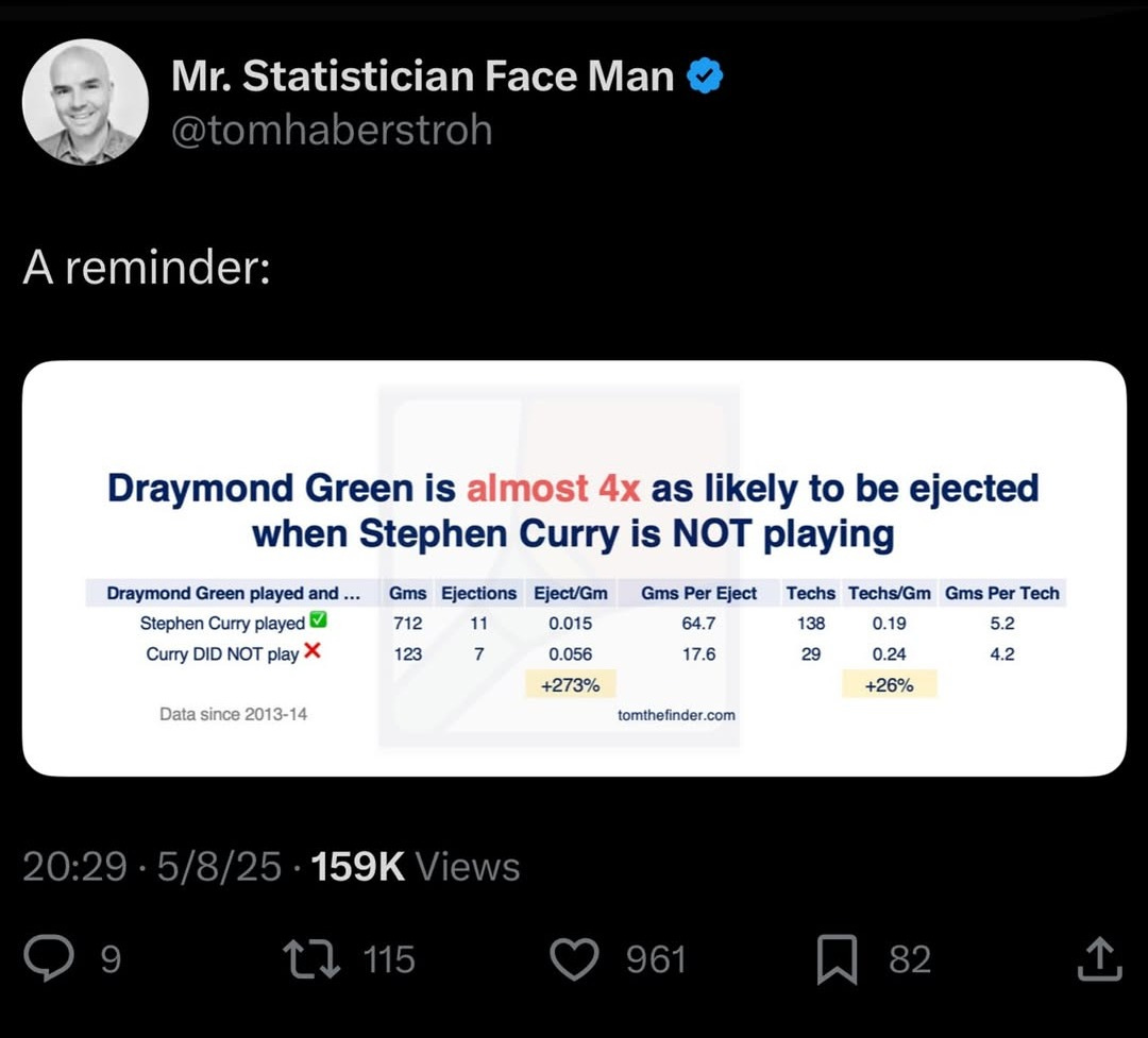 Draymond is almost 4x more likely to get ejected when Steph is out.