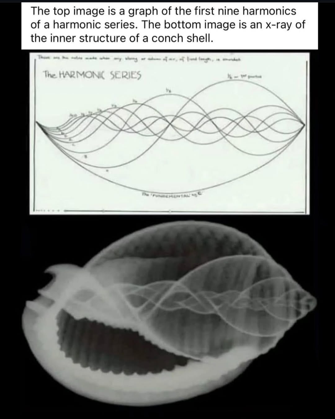 So the conch doesn’t intentionally “mirror” music — it’s that music and the conch both mirror math and physics.