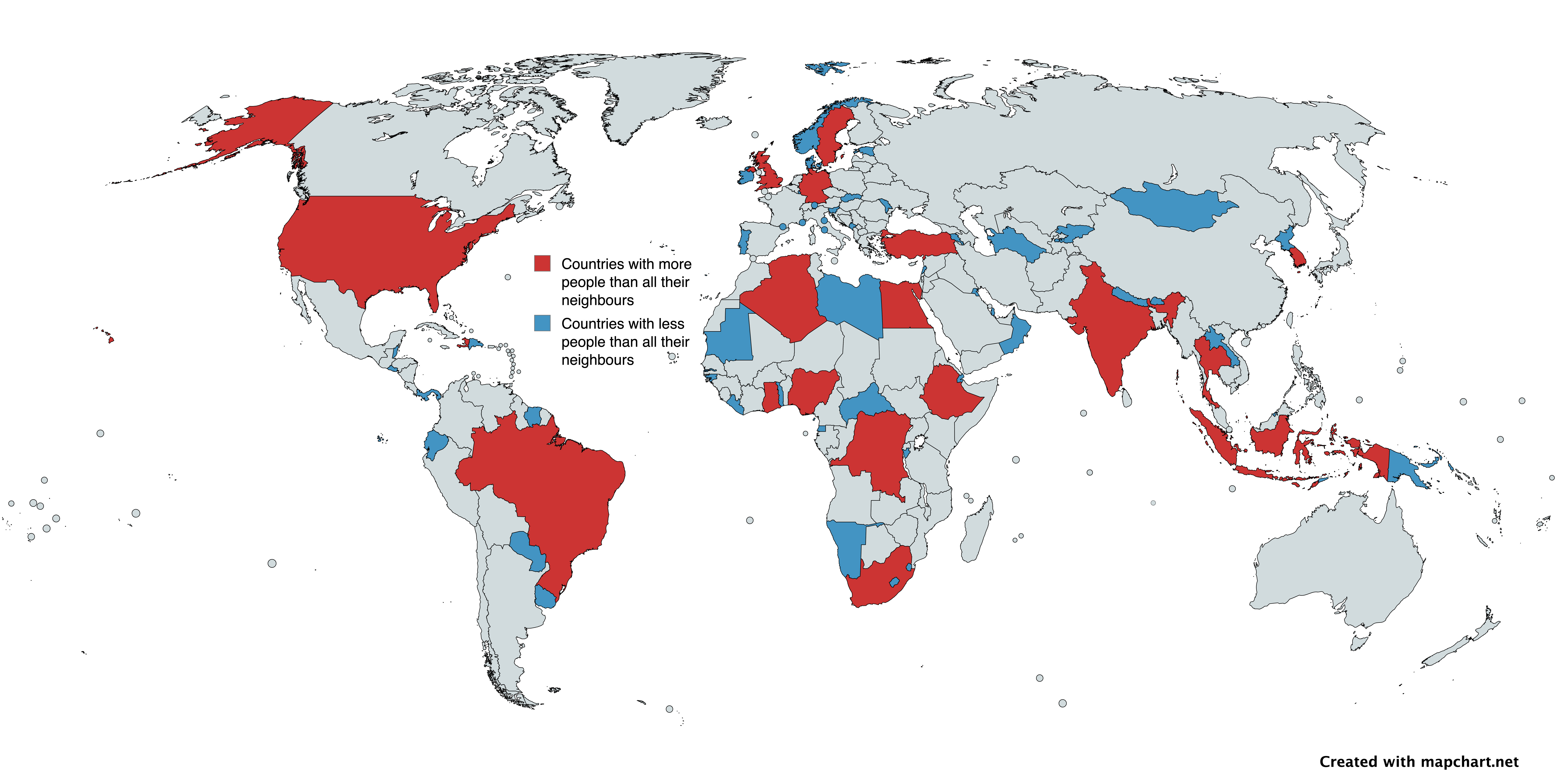🗺️ Countries that Have More/Less People Than All Their Neighbours