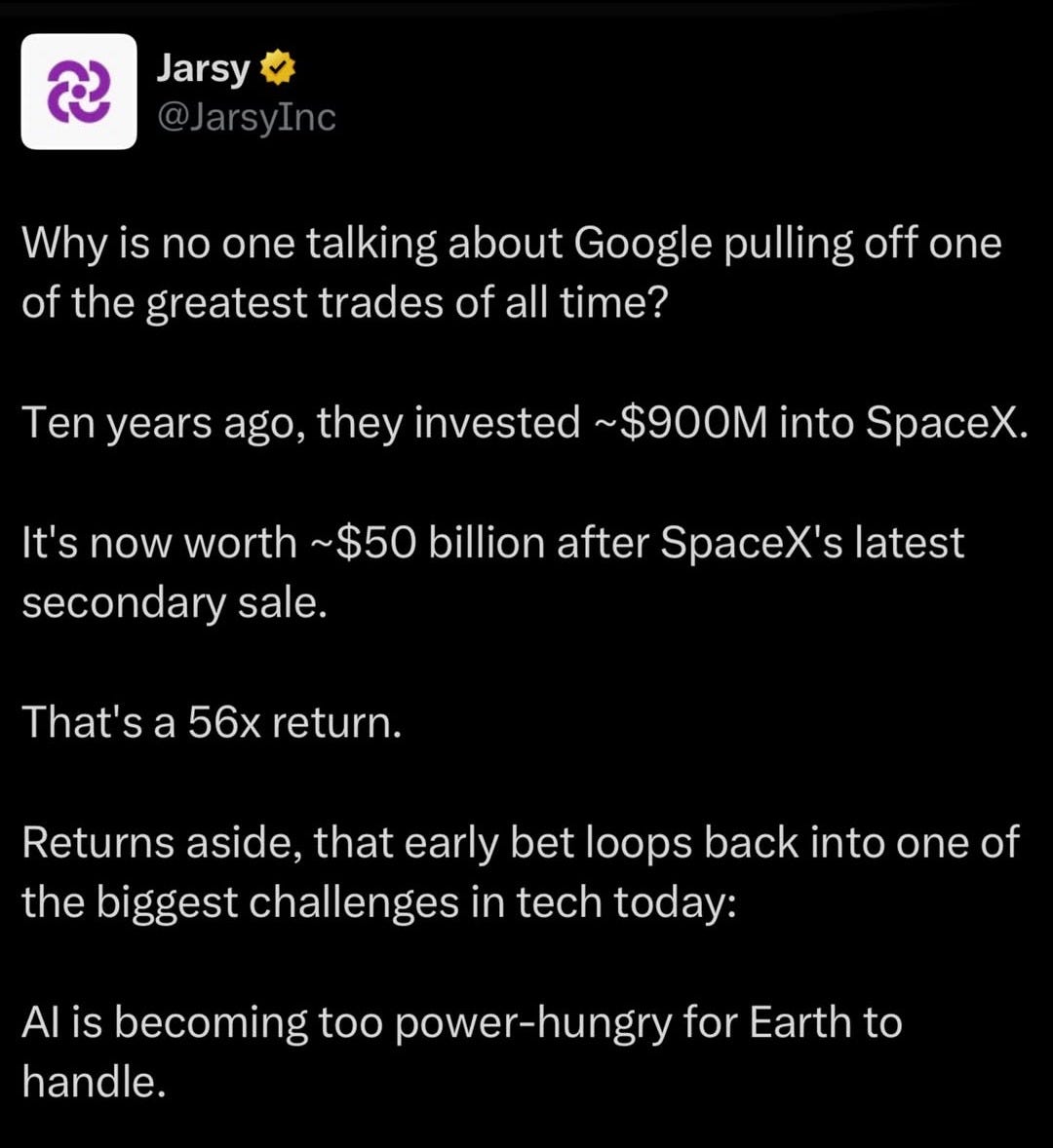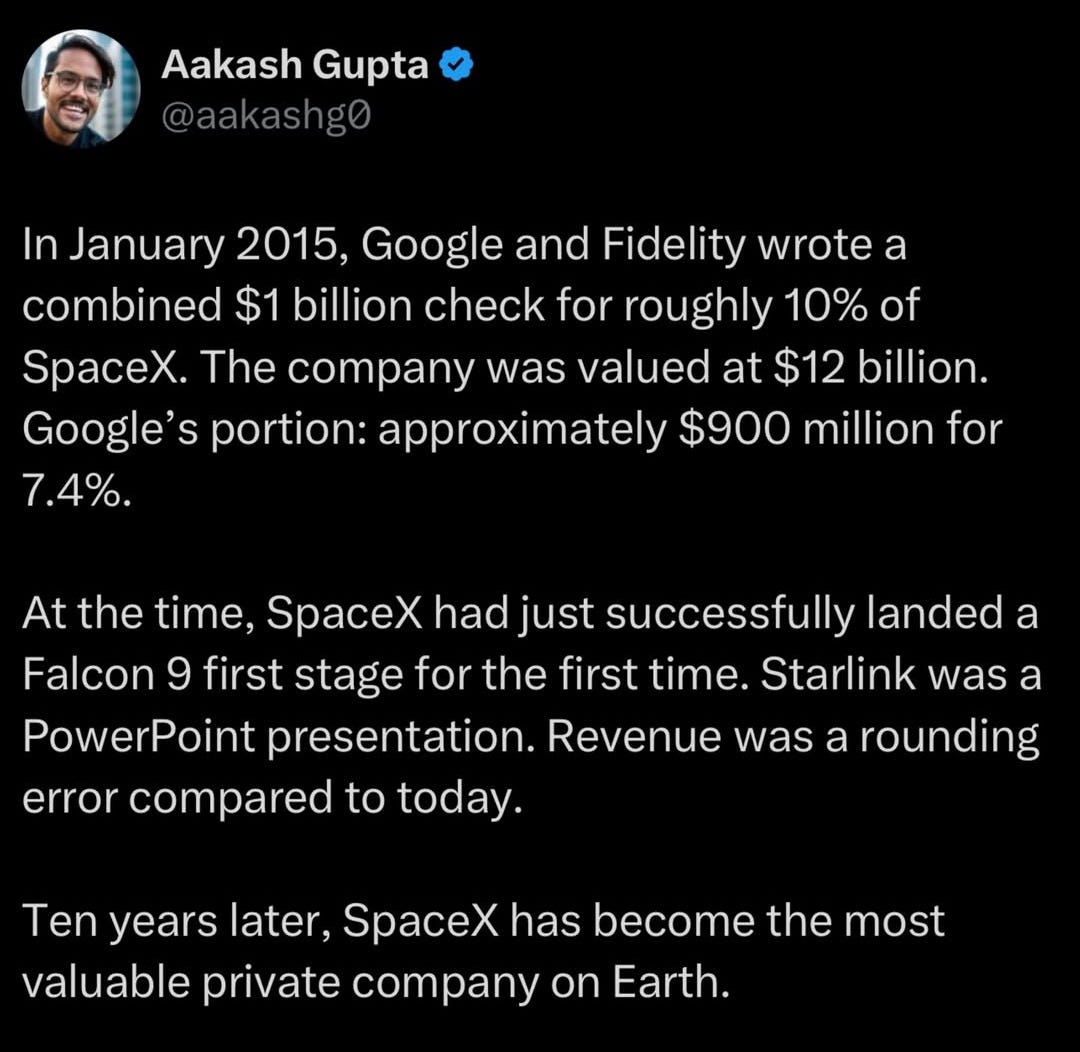 PLUS, the story of how Google made $50B by investing in SpaceX.