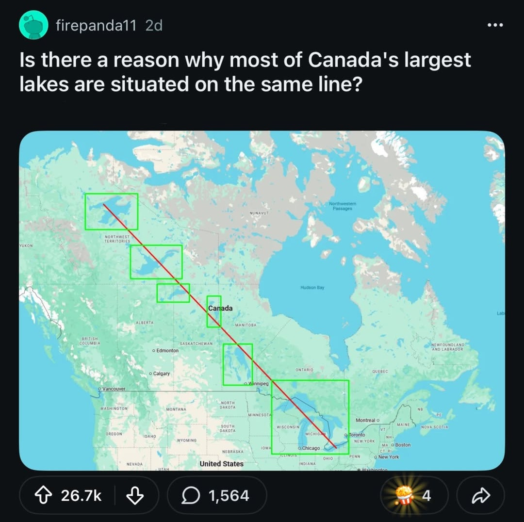 🇨🇦 Why Canada’s Largest Lakes Are Situated On The Same Line