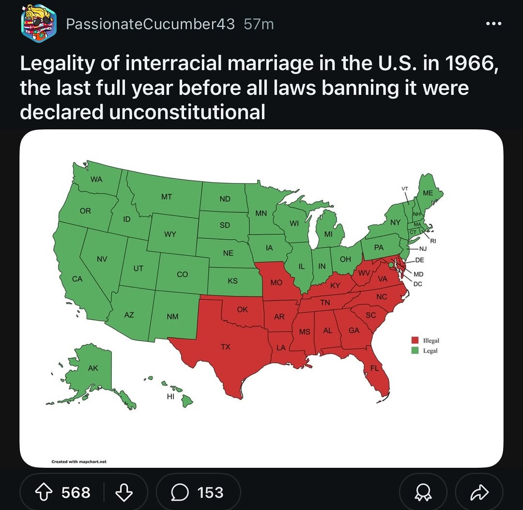 🇺🇸 Legality of Interracial Marriage in the U.S. in 1966