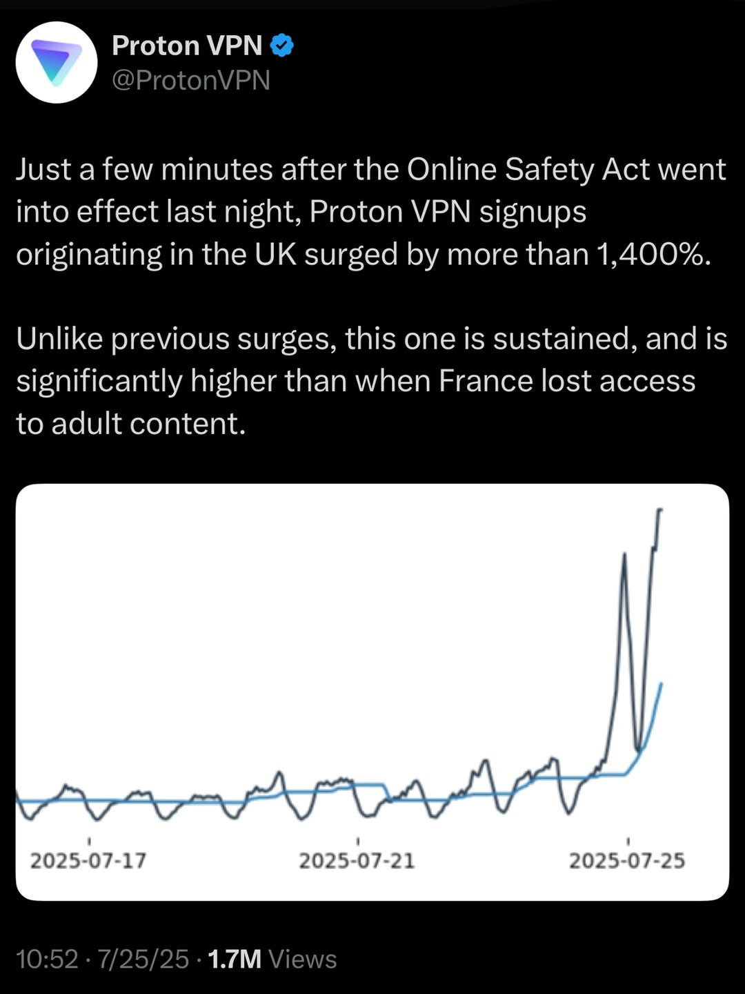 🛜 Proton VPN Signups Spike 1,400% After UK Online Safety Act Takes Effect