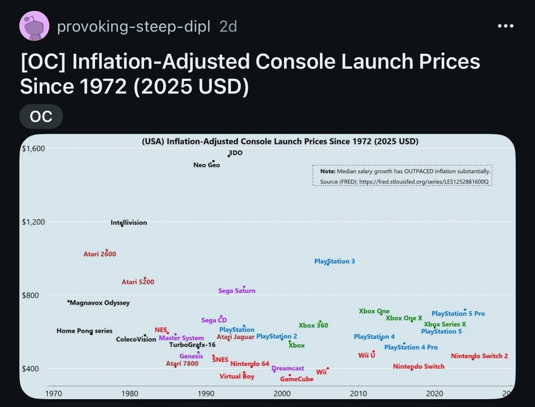 🕹️ Inflation-Adjusted Console Launch Prices Since 1972