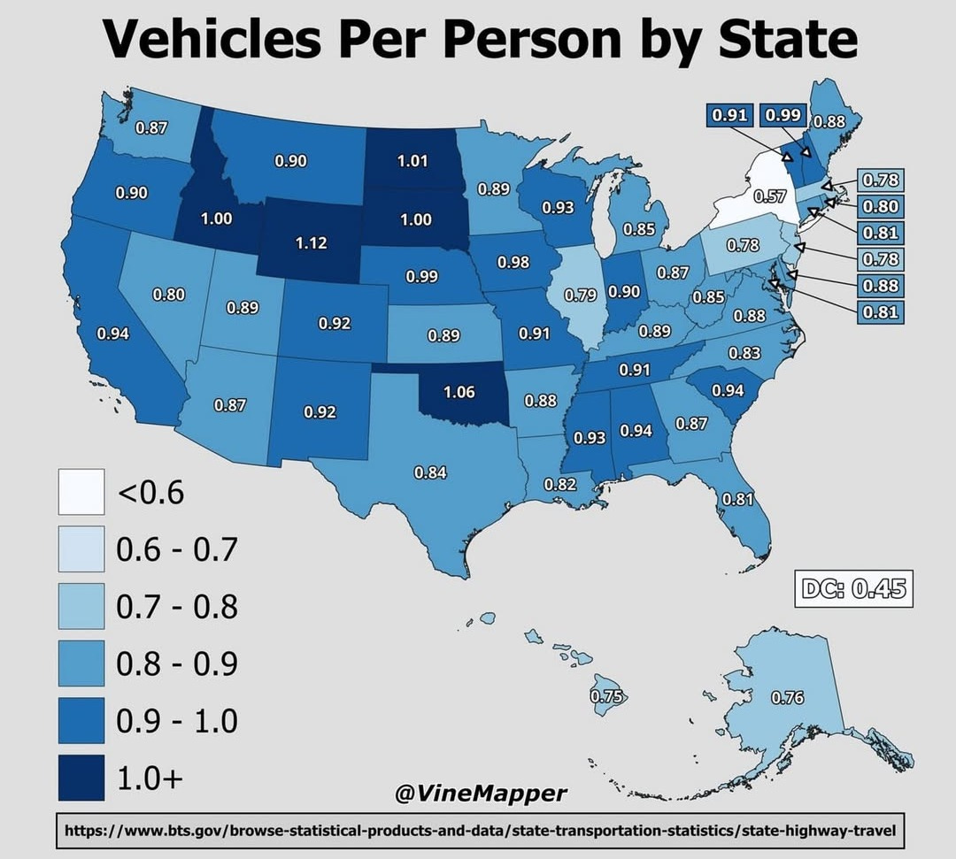 🇺🇸 MAPPED: Vehicles Per Person By U.S. State