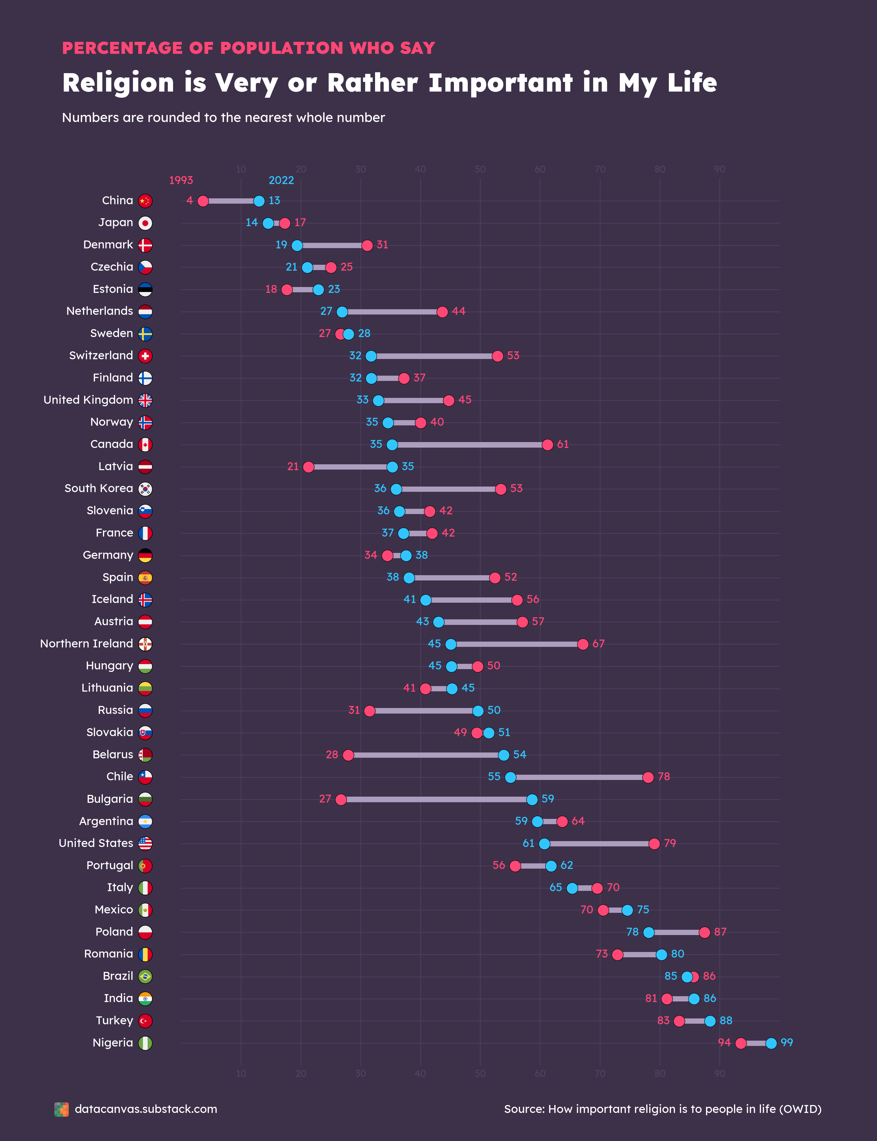 🌎 The Rise and Fall of Religion (1993 vs. 2022)