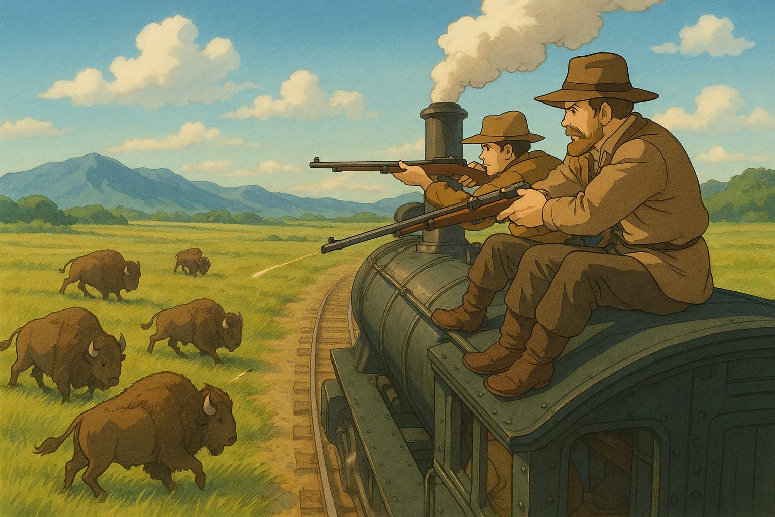 🚂 Railroads played a huge role in the near-destruction of the American bison (buffalo) in the 19th century. Here’s how they hurt the herds:
