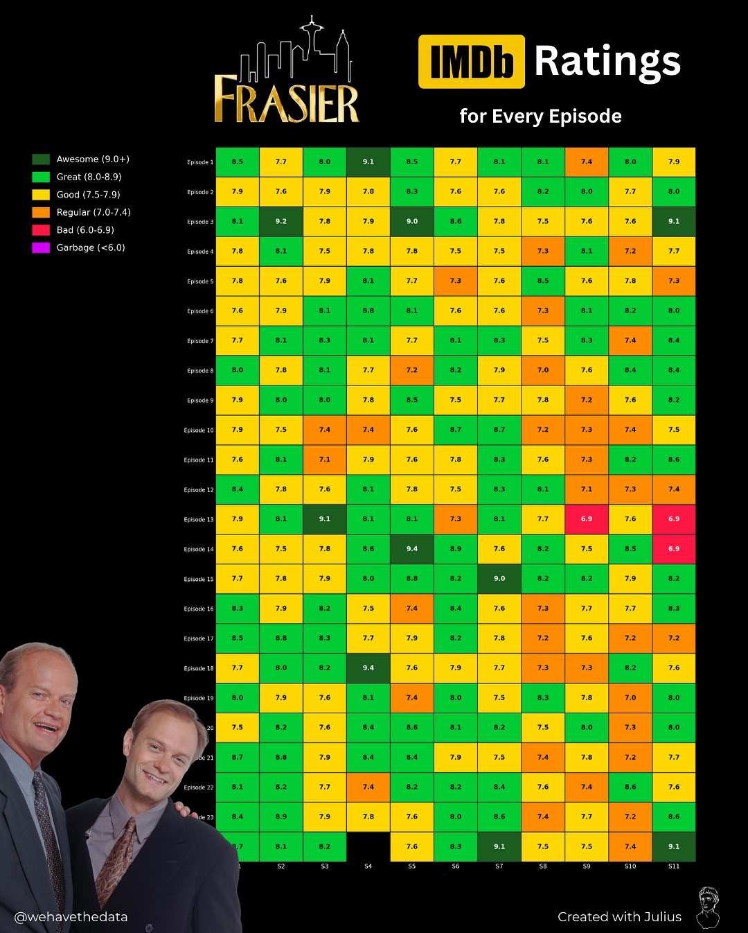 There are only ten episodes of Frasier that got an IMDb rating of 9.0 or higher.