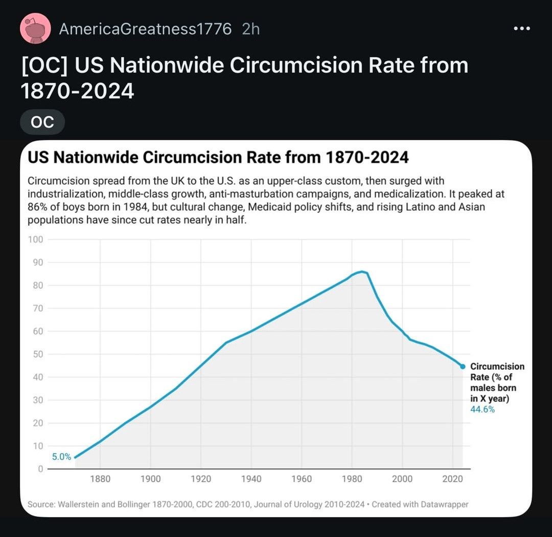 👼 U.S. Male Circumcision Rate (1870-2024); World's Top 20 Richest Black People; The Coolest F***ng Meteorite You've Ever Seen