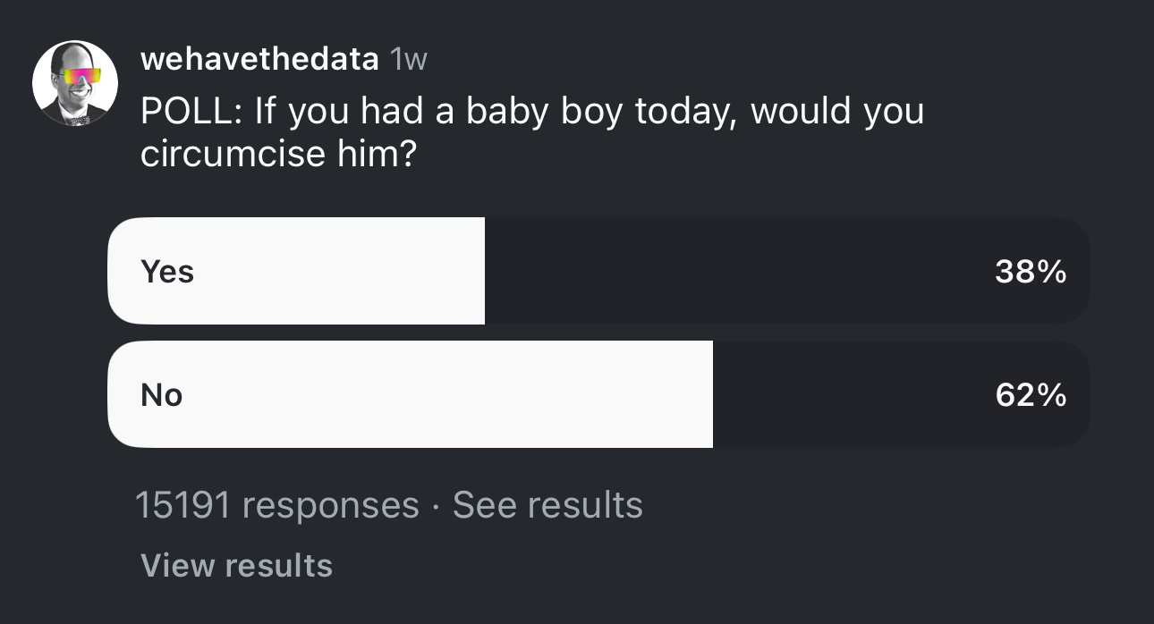 📊 We ran a poll on IG asking if people would circumcise their kid and a whopping 15,191 people responded: