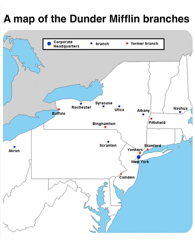 A Map of the Dunder Mifflin Branches (past and present)