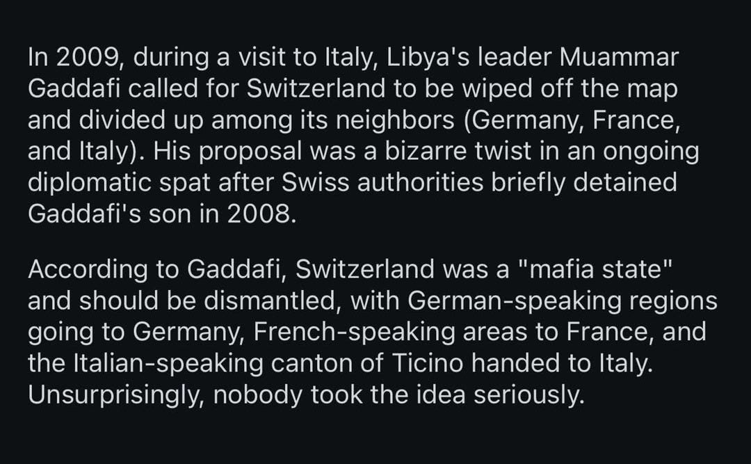 🇨🇭 TBT: The Time Gaddafi Tried to Get Europe to Annex Switzerland